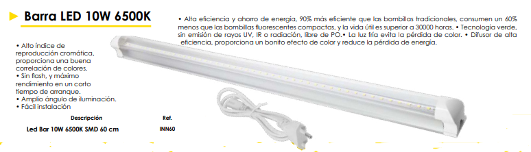 Nota: Es importante consultar las especificaciones exactas del producto del fabricante para obtener detalles precisos sobre el flujo luminoso, las dimensiones y otras características técnicas de la Barra LED 10W 6500K específica que te interese.