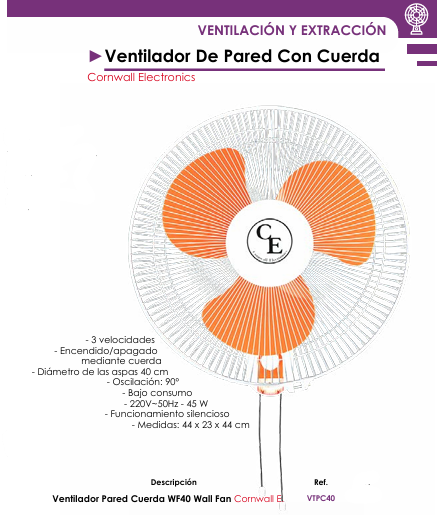 Ventilador De Pared Con Cuerda - Cornwall Electronics