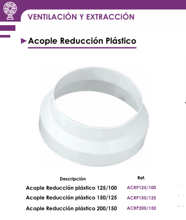- Adaptabilidad Versátil: Ideal para conectar extractores, filtros y tubos flexibles con diámetros distintos (disponible en 125/100, 150/125 y 200/150 mm).