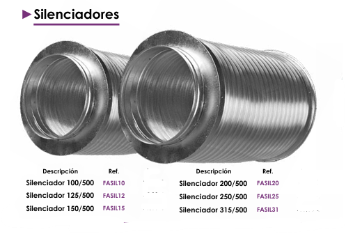 - Reducción Efectiva del Ruido: Gracias a su diseño interno y los materiales absorbentes utilizados nuestros silenciadores reducen significativamente el nivel de ruido producido por extractores y el movimiento del aire en los conductos.