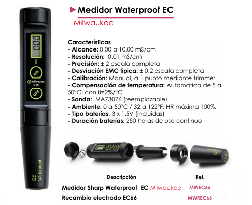 Ofrece a tus clientes la fiabilidad y durabilidad de Milwaukee con este medidor Waterproof de conductividad eléctrica (EC). Diseñado para mediciones precisas en soluciones nutritivas. Este medidor resistente al agua es ideal para entornos de cultivo húmedos y garantiza un control óptimo de la concentración de nutrientes para un crecimiento saludable de las plantas.