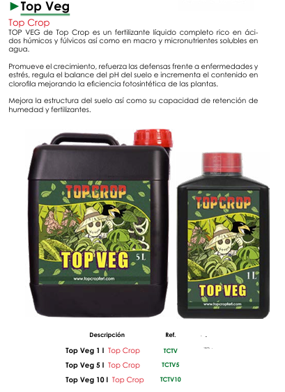 Prepara tus plantas para un desarrollo exuberante y saludable desde sus primeras etapas con Top Veg de Top Crop ya que es un fertilizante líquido completo diseñado para optimizar la fase de crecimiento.