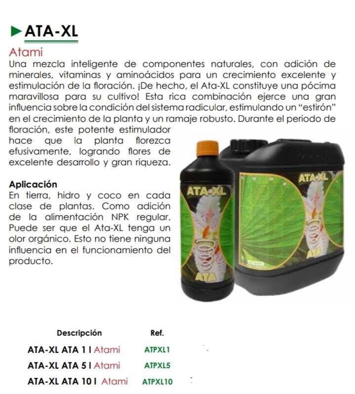 ATA-XL Atami es mucho más que un simple fertilizante ya que es una mezcla inteligente y sofisticada de componentes naturales enriquecida con minerales esenciales, vitaminas vitales y aminoácidos fundamentales para un crecimiento exuberante y una floración espectacular.