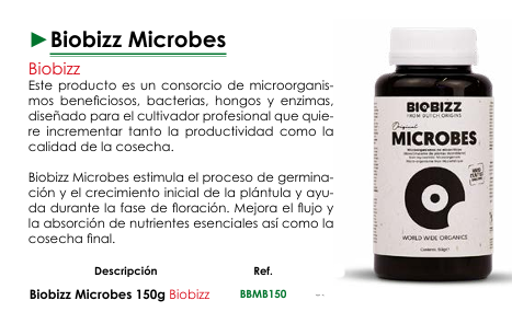 Descubre el secreto para un cultivo próspero con Biobizz Microbes ya que es un consorcio avanzado de microorganismos beneficiosos, bacterias, hongos y enzimas. Diseñado específicamente para el cultivador profesional que busca maximizar tanto la productividad como la calidad de sus cosechas.