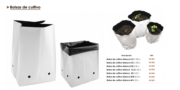 Disponemos de una amplia gama de tamaños y capacidades desde bolsas pequeñas para plántulas y hierbas aromáticas hasta bolsas de mayor volumen para plantas de mayor porte y cultivos más exigentes. Encontrarás la opción perfecta para cada tipo de planta y para las dimensiones de tu espacio de cultivo.