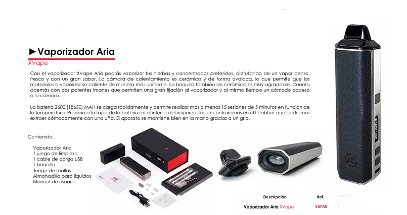 Contenido de la Caja del Vaporizador Aria XVape: