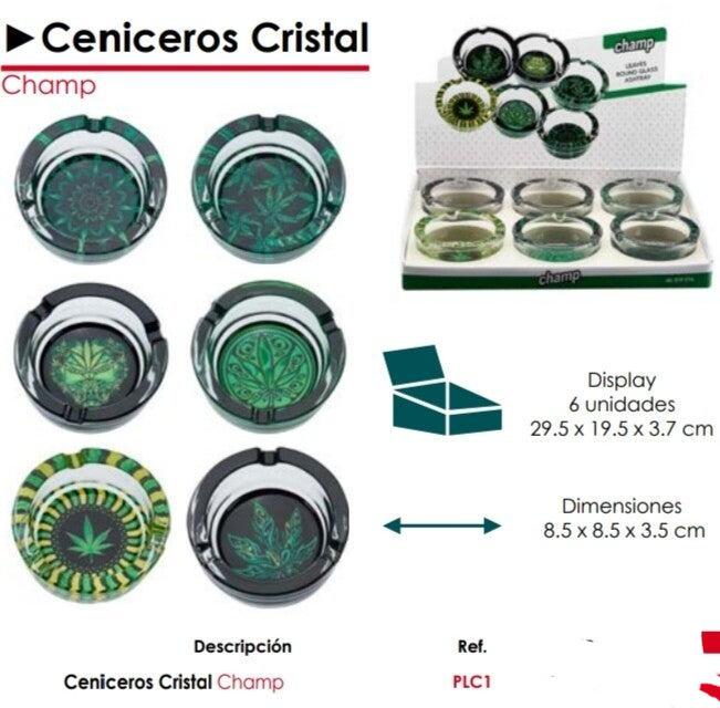 Los Ceniceros Cristal Champ con motivos de hojas no son solo un accesorio funcional sino también un elemento decorativo que añade estilo a cualquier espacio de fumado. Su calidad y su diseño atractivo los convierten en un producto imprescindible para cualquier grow shop.