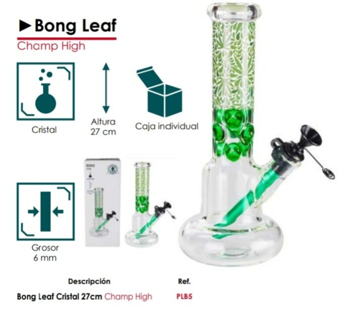 El Bong Leaf Cristal 27cm Champ High no es solo un instrumento para fumar sino una pieza de diseño que evoca la tranquilidad de la naturaleza. Su estética atractiva y su rendimiento superior lo convierten en un producto imprescindible para cualquier grow shop.