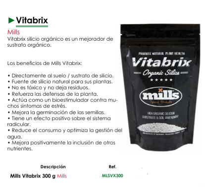 Descubre Mills Vitabrix es el mejorador de sustrato orgánico diseñado para llevar tus cultivos al siguiente nivel. Este potente compuesto, rico en silicio orgánico de alta calidad es la clave paraUnlock a tierra más viva, plantas más fuertes y cosechas abundantes.