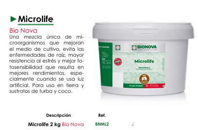 Transforma tu medio de cultivo y desbloquea el máximo potencial de tus plantas con la mezcla única de microorganismos de Microlife de Bio Nova.