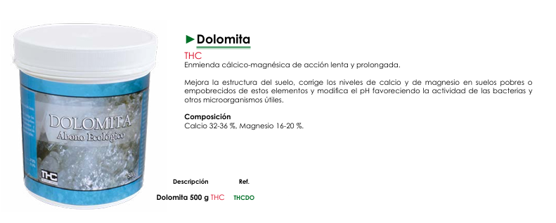 Descubre la Dolomita de THC es una enmienda cálcico-magnésica de acción lenta y prolongada que transformará la calidad de tu suelo de forma natural y efectiva. Este abono ecológico es la solución ideal para mejorar la estructura del suelo, corregir los niveles de calcio y magnesio en suelos pobres o empobrecidos y optimizar el pH favoreciendo así la actividad de las bacterias y otros microorganismos beneficiosos.